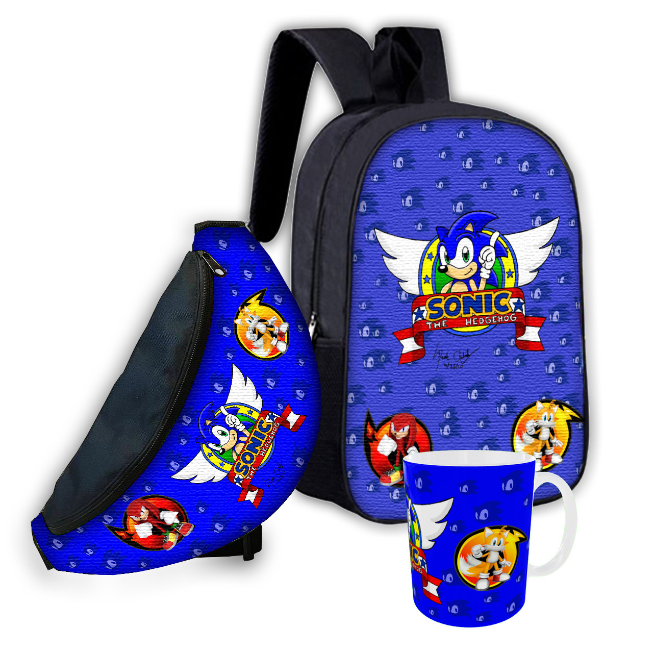 Набір дитячий Супер Сонік рюкзак рюкзак 36х27см сумка-бананка, кружка з принтом для хлопчика (01590)